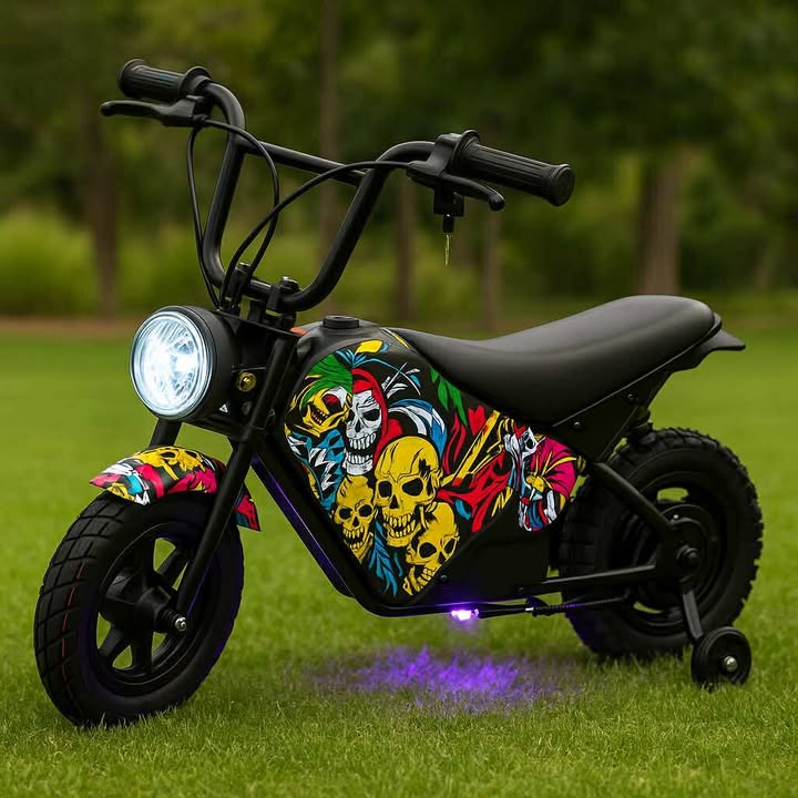 The coolest design and most powerful bike- 36Volt Lithium-Ion battery 4400mAh/ Power 158:4 Wh /BRUSHLESS Motor 36 V 350Watt Kids Electric Dirt Bike, with rubber tyres and speed up to 20km/h.