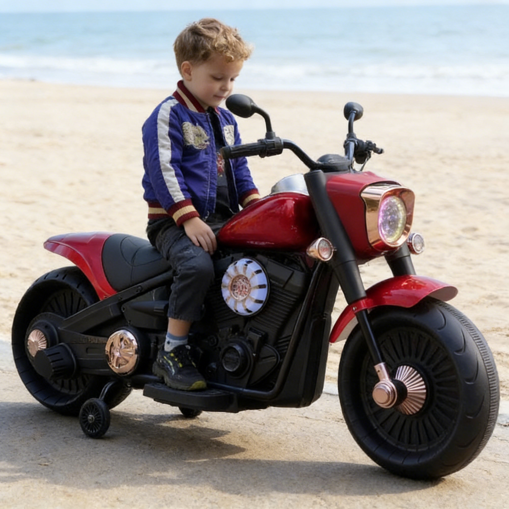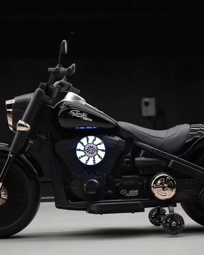 The Harley Elite Cruiser Edition is a high-performance, large electric ride-on motorcycle designed for children aged 4 to 10 years, supporting up to 30 kg. Built for durability and extended use, this model features dual 35W motors, a 12V 10Ah high-capacity battery, and large EVA solid rubber wheels, ensuring stable handling, smooth acceleration, and a long-lasting ride time of 2–3 hours.