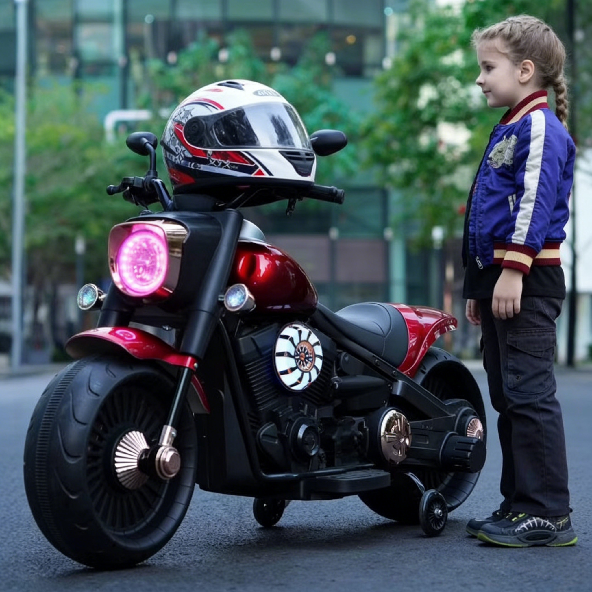 Available in Black Metallic and Red Metallic, this ride-on provides a sleek, high-end cruiser appearance. The premium leather seat adds comfort, while the sturdy frame and high-quality plastic construction guarantee longevity.