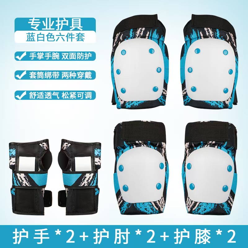 Includes 2 knee pads + 2 elbow pads + 2 hand/wrist pads for complete protection.