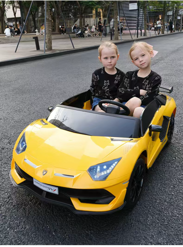 Let your kids ride in style with the Kids Electric Ride On two-seater Lamborghini. This toy car provides the large size comfort of the Lamborghini with additional features your little one will love.