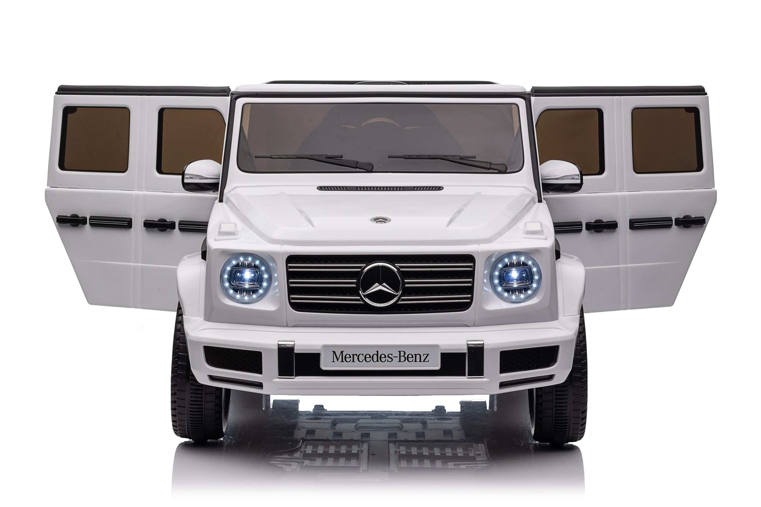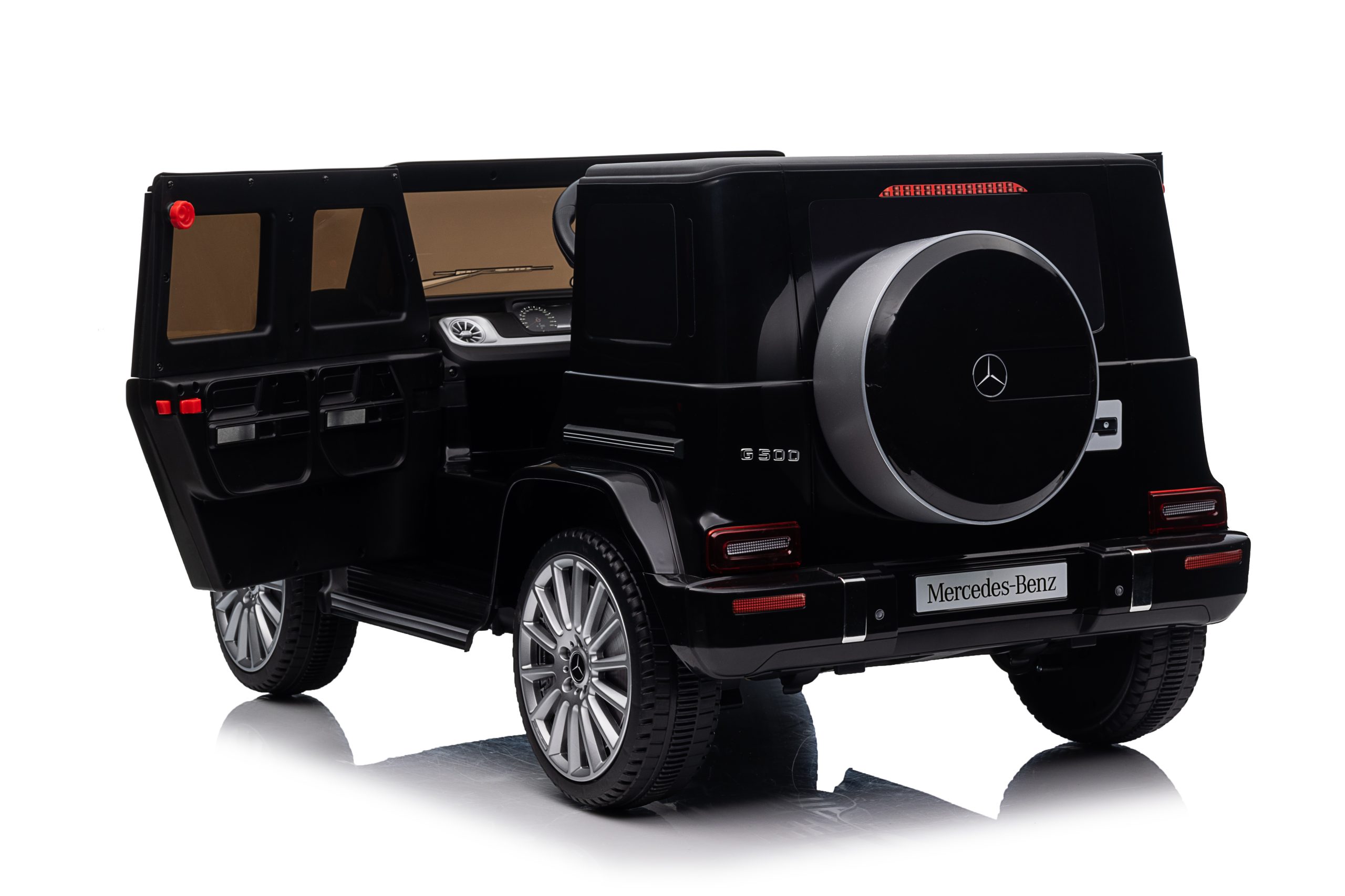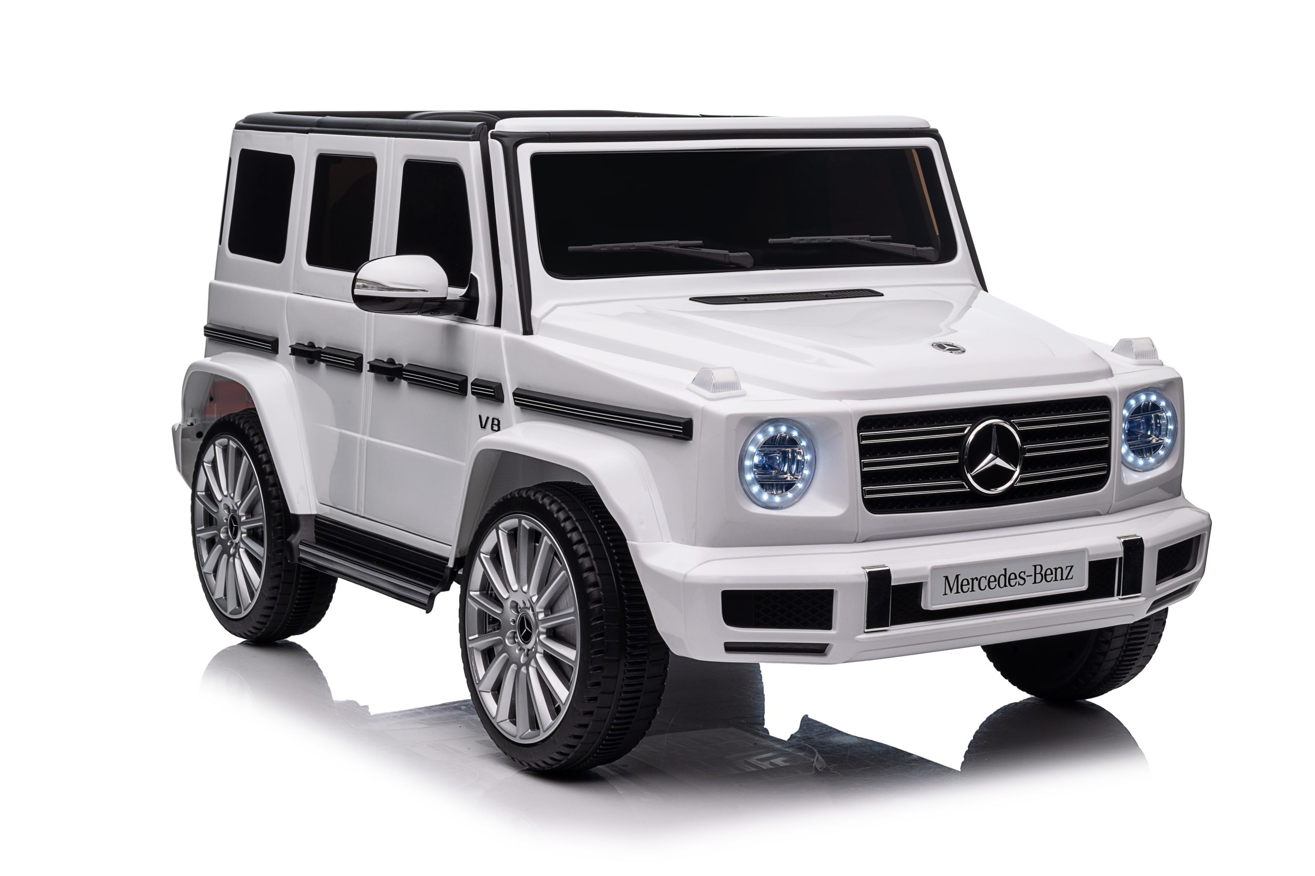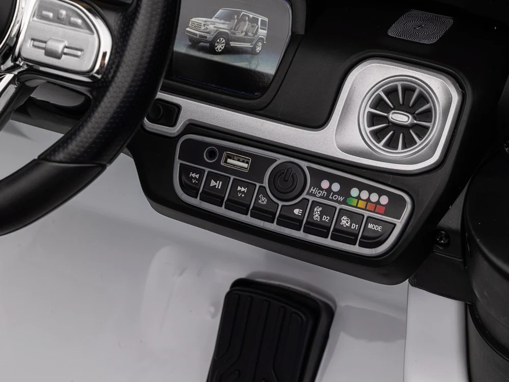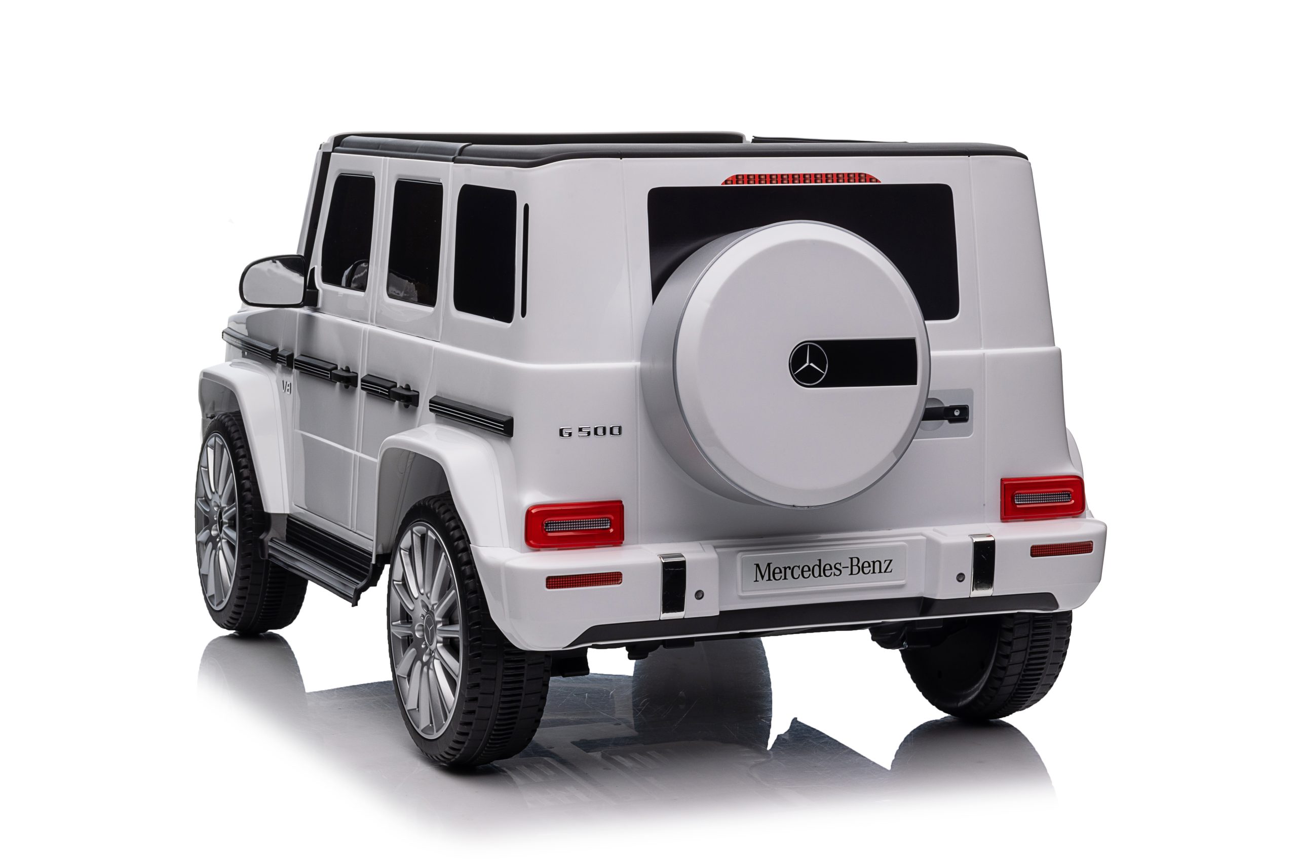 Give your child the joy of driving with the Licensed Mercedes G500 Ride-On Car. Powered by a 24V 5Ah battery and dual 24V 75W motors, it offers three adjustable speeds up to 8 km/h with forward and reverse drive, soft start for smooth acceleration, and automatic braking for safety.